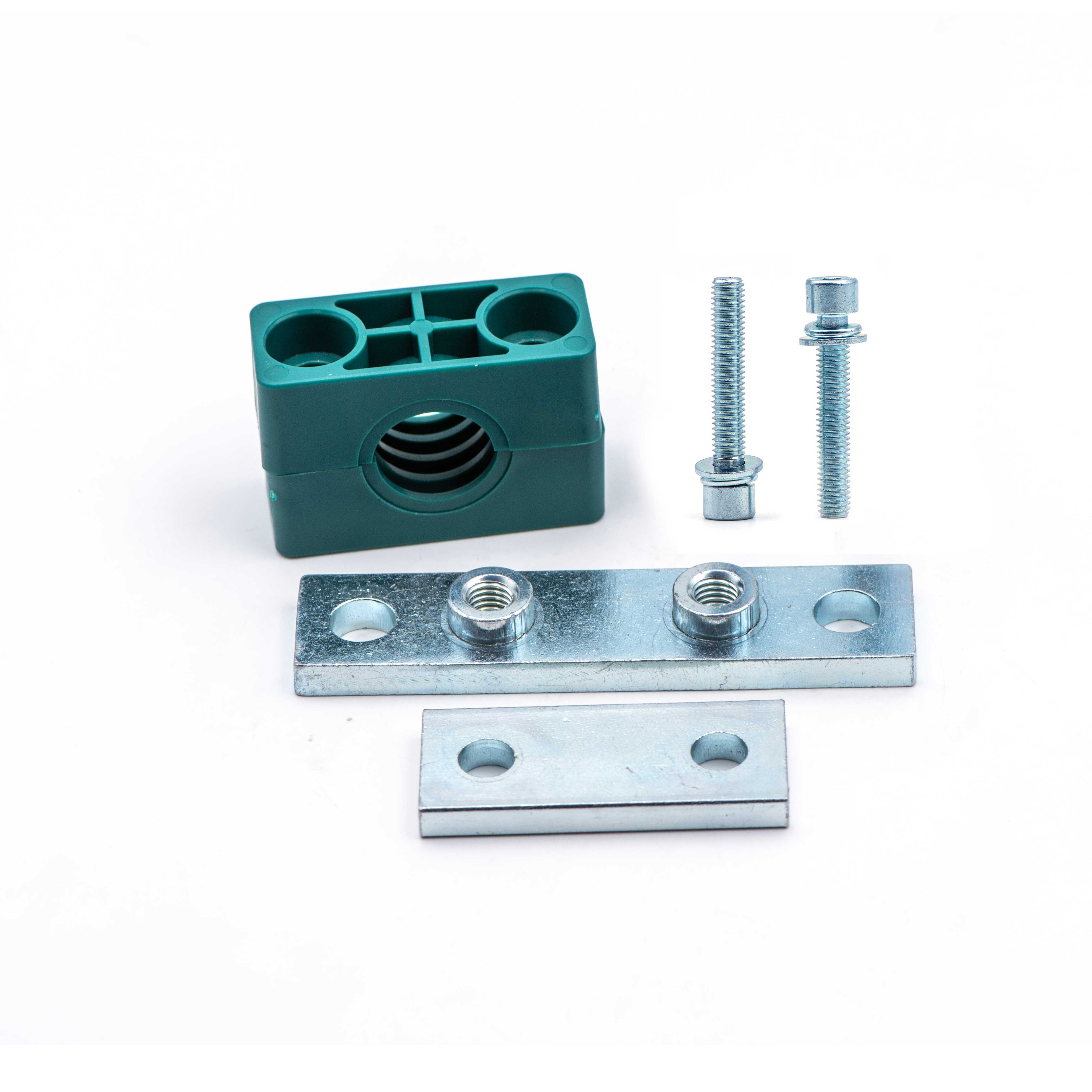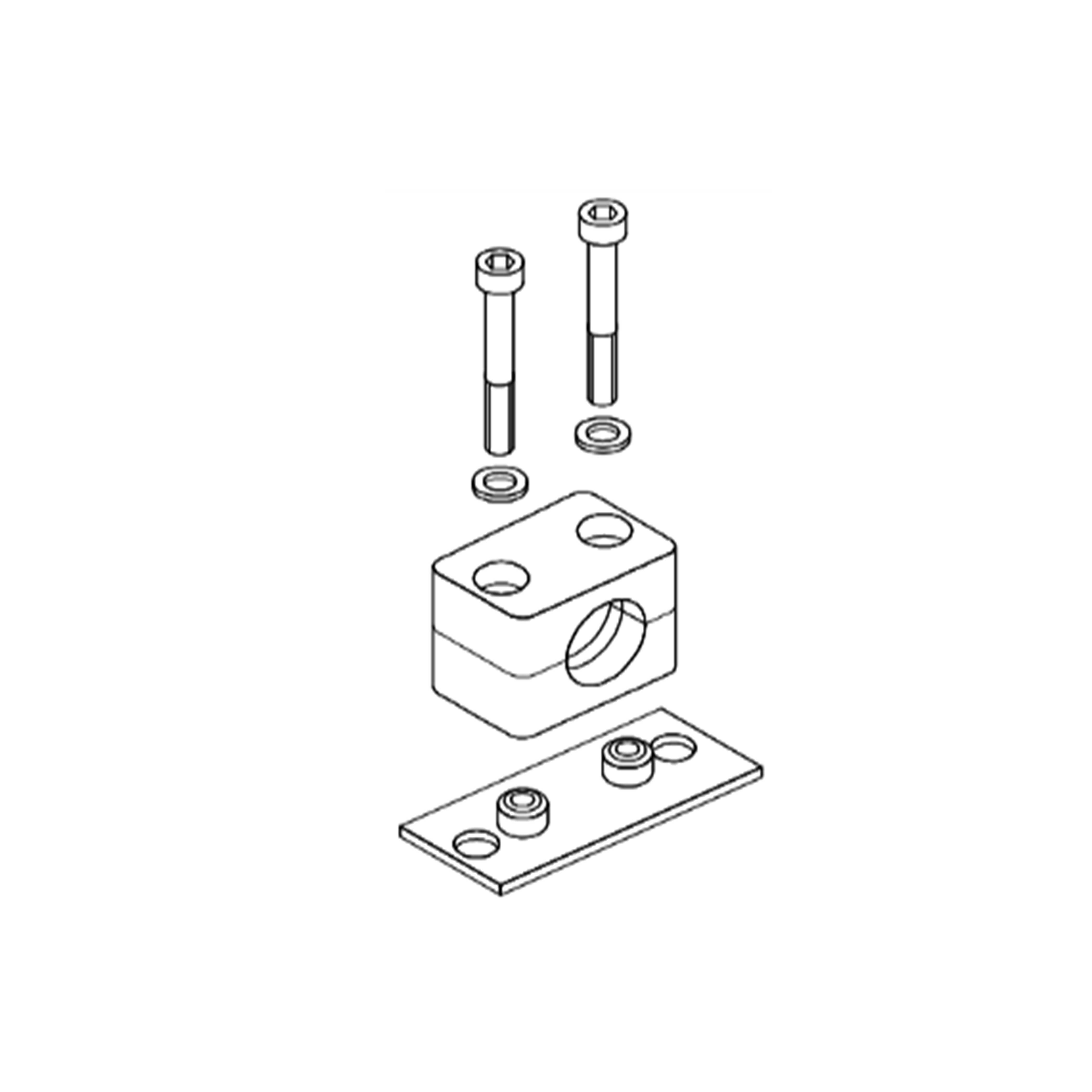 Hexagon socket bolts, welding/bolt plate, 2 clamps, washers
