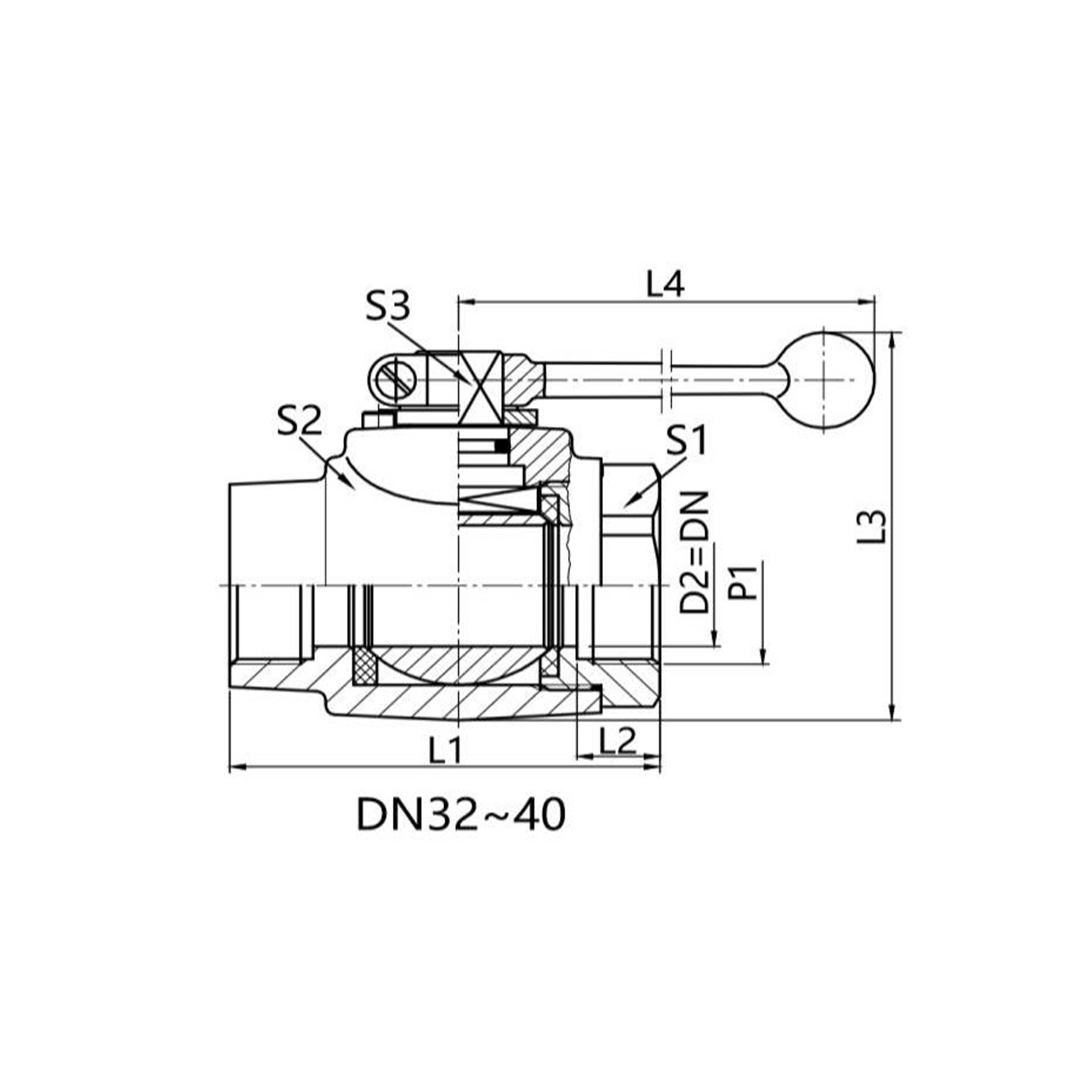 KH-BSPP válvula de bola de 2 vías en acero al carbono con rosca interna BSPP