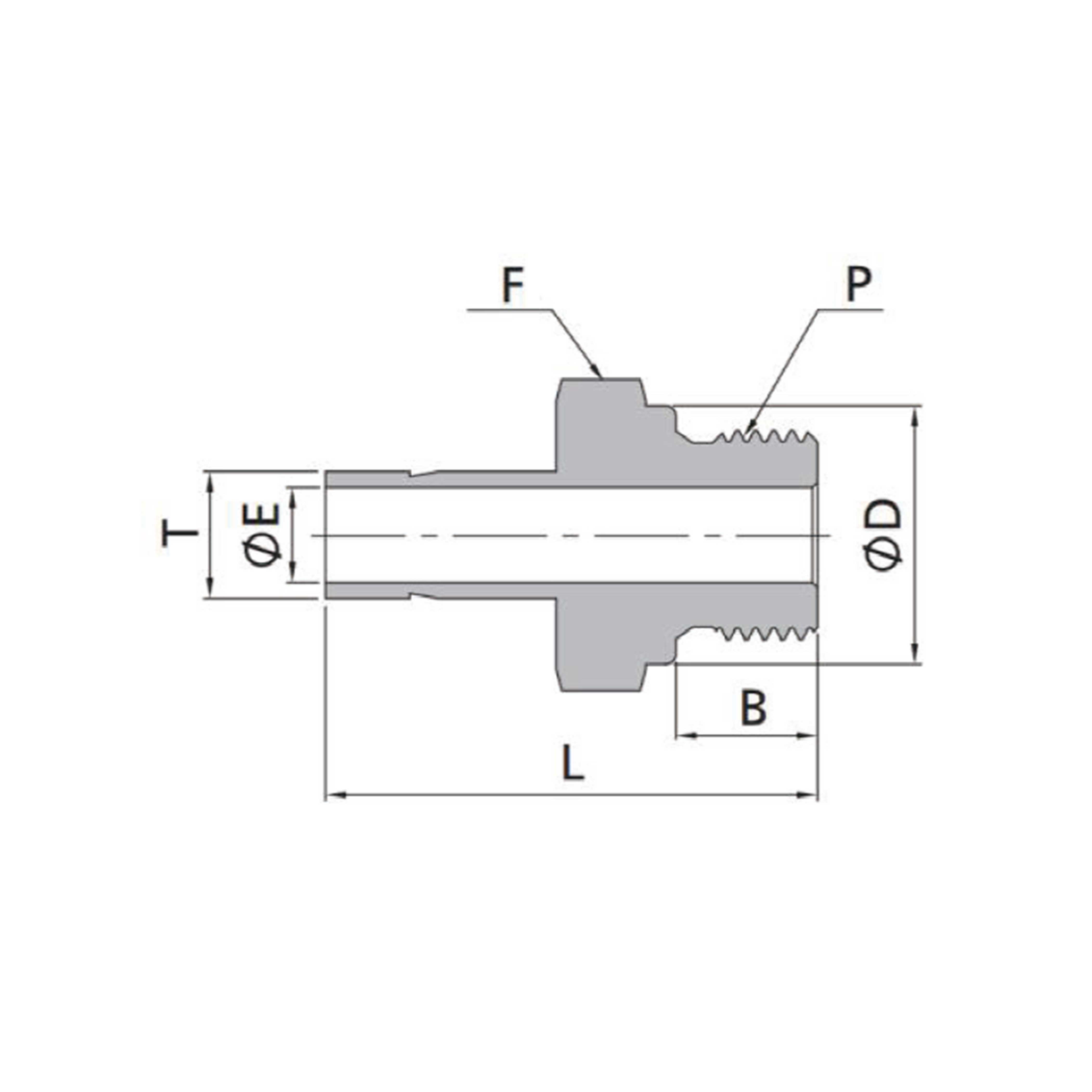 Unión de Compresión Macho (Rosca Imperial/Métrica a ISO Paralela)