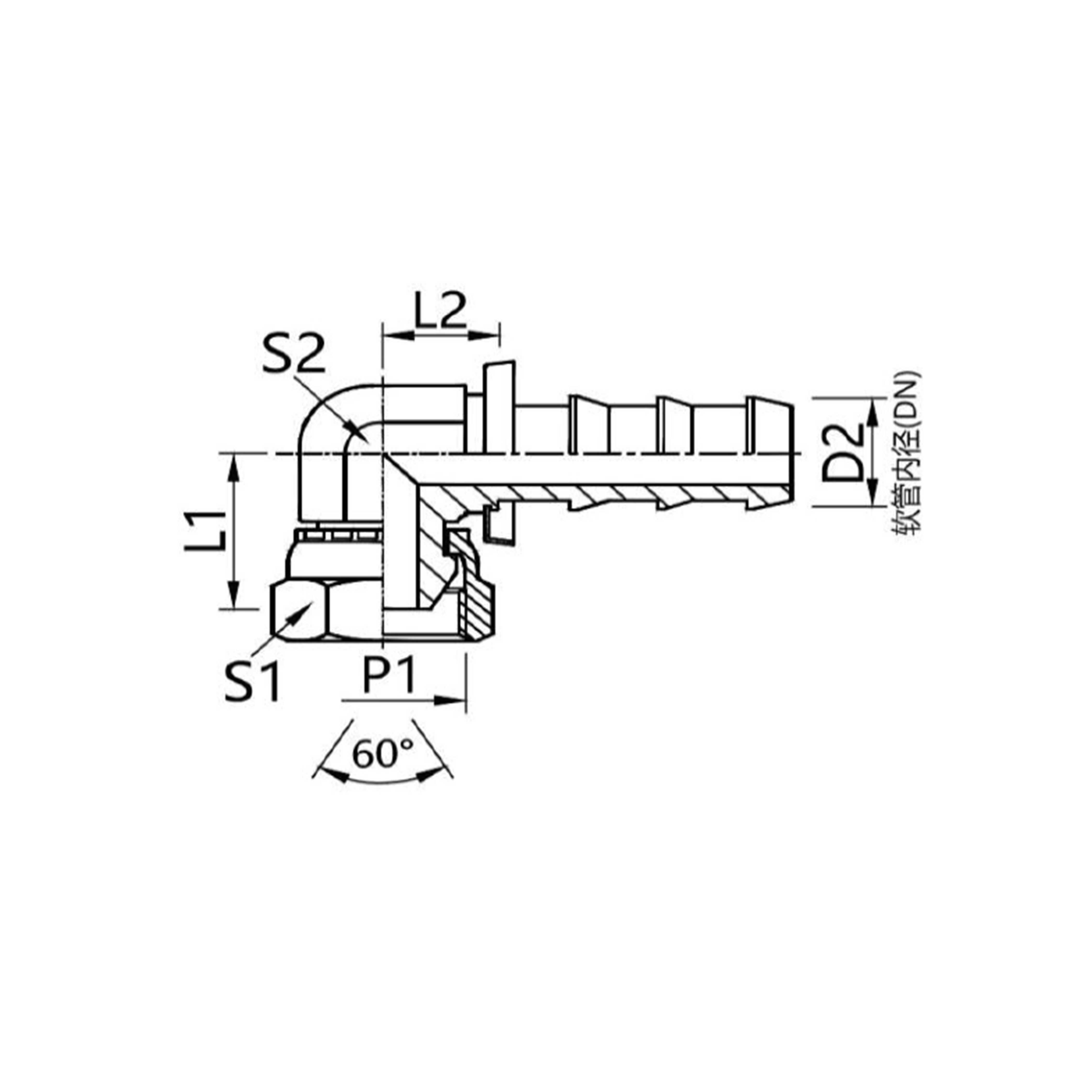 22691K-PO 90° Bend British Pipe Short Body Internal Thread 60°Internal Cone Connector
